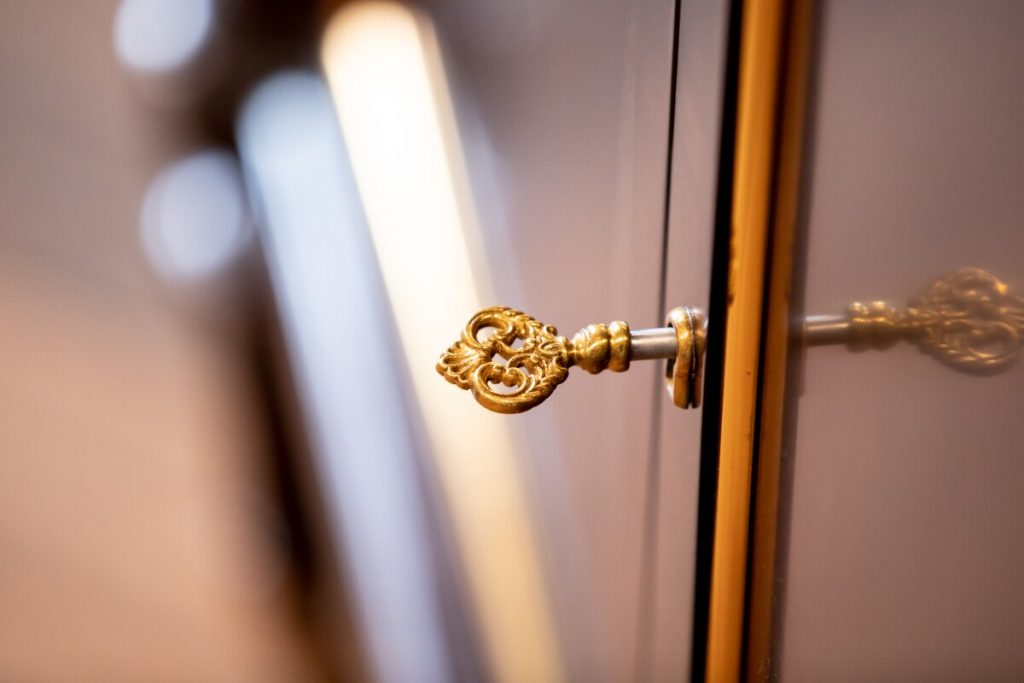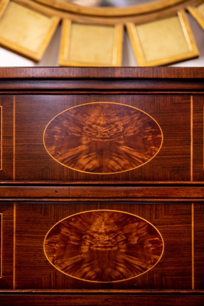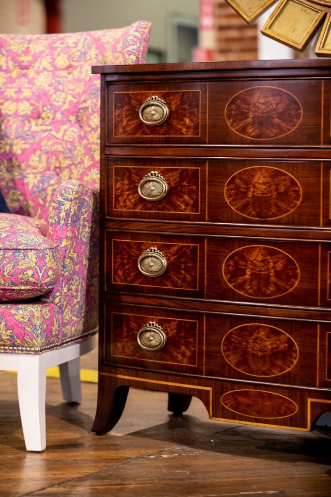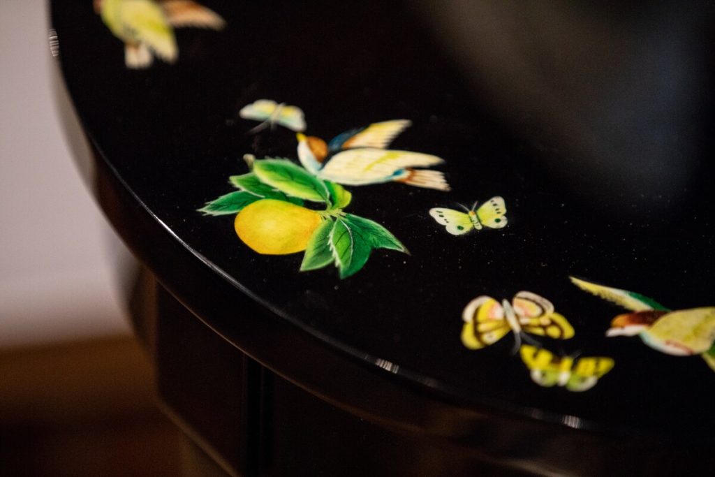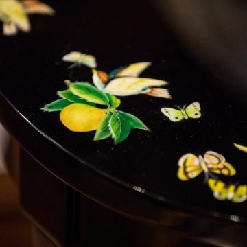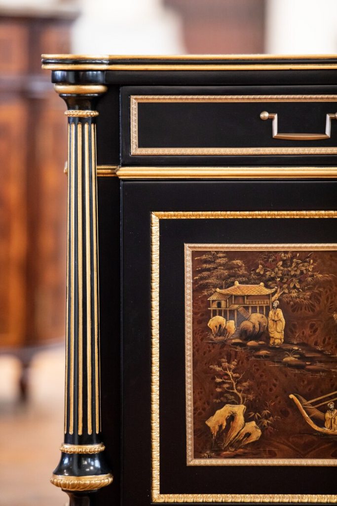 Details are even sweeter when they are flowers. Consider a delicately floraled cabinet or Chinoiserie-style lacquer table. Painstakingly hand-painted, no two pieces are exactly the same. The cabinet comes with Jonathan Charles’ signature key. Behold! The beauty of details.