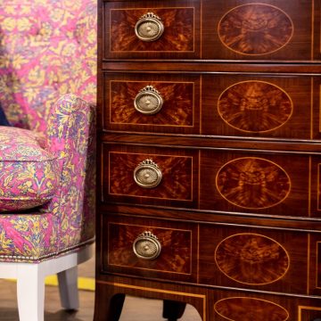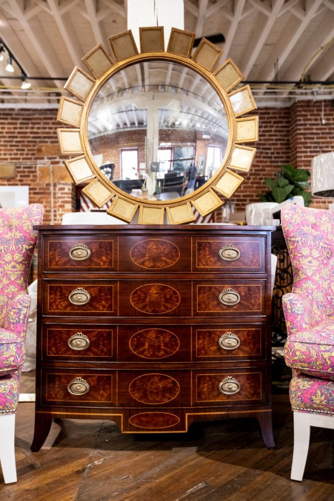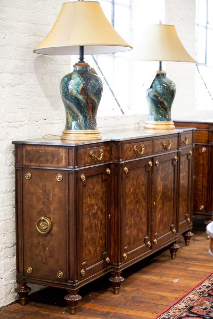 Jonathan Charles and Theodore Alexander offer unique home furniture lines that are rooted in craftsmanship and detail. Commitment and attention to the smallest details is what makes these manufacturers unique. Jonathan Charles CEO Jonathan Sewter relates a story of creating an oyster secretary cabinet so ornate that the hardware from regular suppliers wasn’t sufficient. Employees ultimately handmade the hardware on-site. Ever since, all brass and metal hardware has been manufactured on-site. This minute attention to the smallest finishing is a defining feature for both Jonathan Charles and Theodore Alexander.