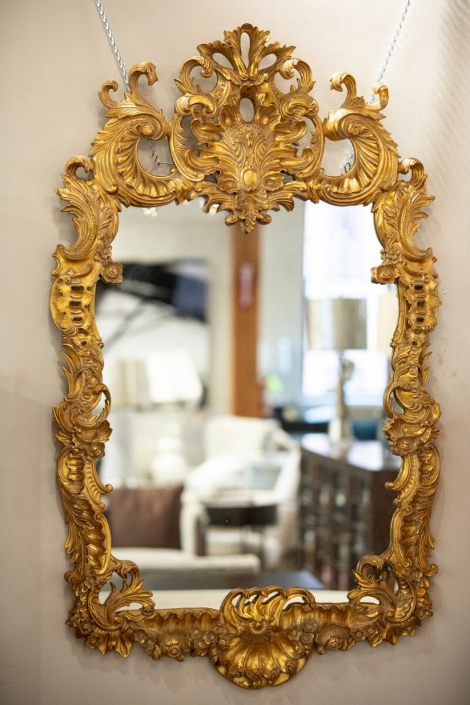 Details don’t always have to be small. Sometimes they can make a luxe, larger-than-life statement. The “Finely Carved and Gilded Rococo style mirror” from Jonathan Charles is what gilt-edged dreams are made of. What better way to bring the richness and glamour of the Rococo style to a space? Inspired by an original dating from 1700, the fine scrolls and floral ornaments, topped with a stylized fleur-de-lis, complete this breathtaking mirror.