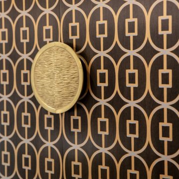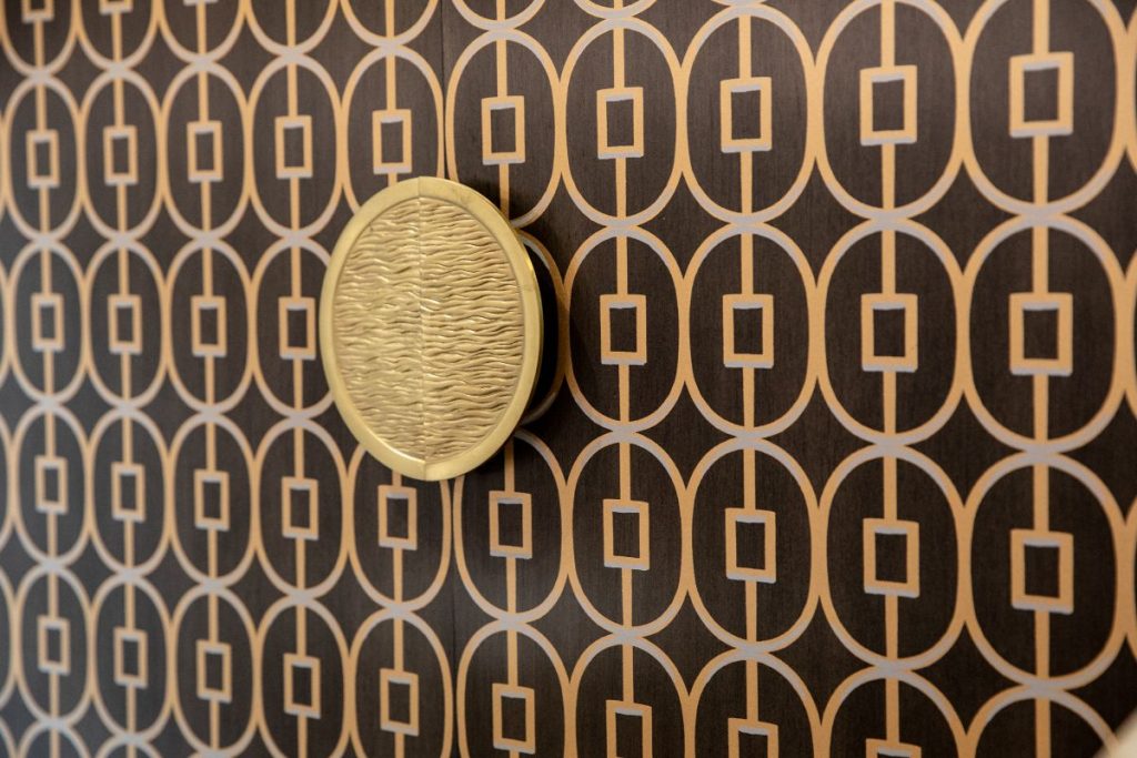 The collection can be customized down to the last detail. Kindel Facets is the first line to offer a selection of wallpaper options for the doors. Once you’ve selected and customized the cabinets and doors, Kindel Facets offers a range of twelve bases including Greek key, traditional twist and more.