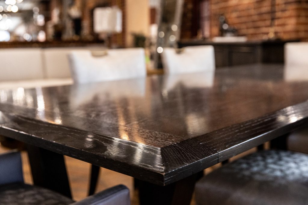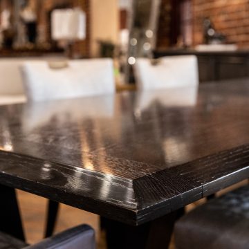 Chaddock Centre Dining Table – By designed Larry Laslo. 21st century trestle table seats eight and can be crafted from maple or oak. Gail loves the two optional 24-inch extensions that can be ordered along with the table for the ultimate in space and seating capacity.