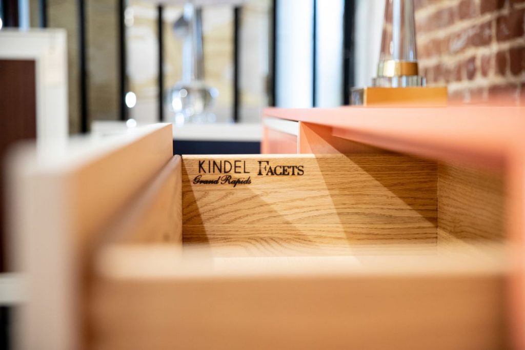 Kindel Facets, owned by Kindel Grand Rapids, features 100 percent American-made bench-assembled furniture. From veneers to wood finish details, everything is applied by hand with precision and care.