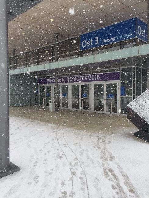 It’s close to midnight and Day 2 of Domotex is in the books. Soft lights illuminate the freshly fallen snow as the Green Front team makes it way towards rest and refreshment, and prepares to do it all again tomorrow.