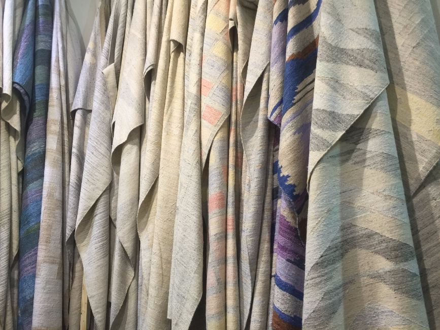 Delicate colors and rich texture are lit to perfection as these Scandinavian design durries hang in elegant, draped display. With so much to see, the vast quantity and sheer variety might be overwhelming to some. Fortunately, Green Front knows just what they’re looking for.