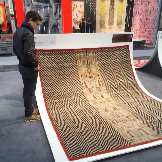 Rug or work of art? Den takes a quick, quiet moment to admire this beautifully displayed and award winning masterpiece. Domotex presents it’s own awards for various achievements in the industry, such as most innovative, etc.