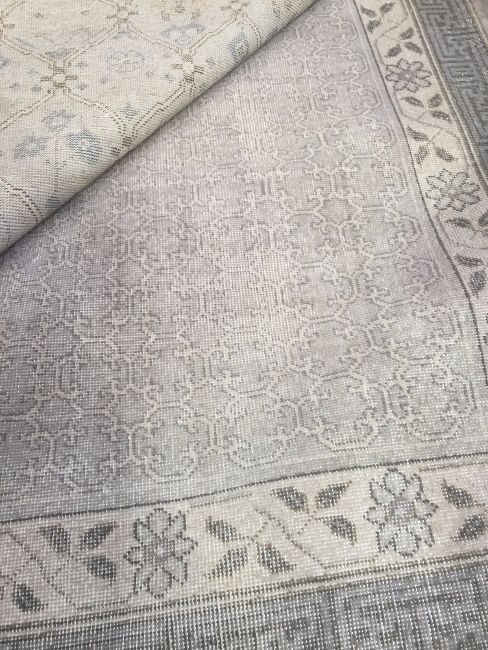 Another gorgeous example of a hand-knotted rug. Den and Ashley notice that the majority of the traffic and action at Domotex seems to be happening around the machine-made products, while there appears to be less interest in made-by-hand pieces this year. The economy may have something to do with it.
