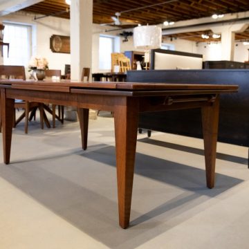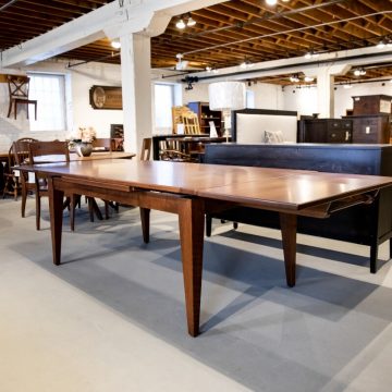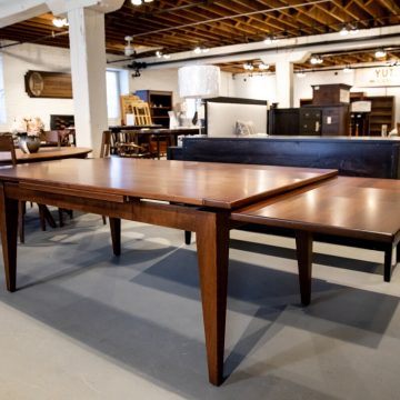 With its timeless Shaker design and elegant, tapered legs, Zimmerman’s drawleaf table truly embodies the company’s story of creating “American antiques and present-day adaptations of Old World treasures.” Crafted in small, family-owned Pennsylvania shops, Zimmerman’s solid-wood furniture is heirloom quality. This table, available in the basement of Building 8, also includes innovative design. Easily extended by a single person, the two 20” table leaves are stored cleverly beneath the ends of the tabletop, rocking back and sliding forward to interlock with the top. With a variety of sizes ranging from 54” closed to 124” extended, you’ll find the perfect size for your space and your gatherings.