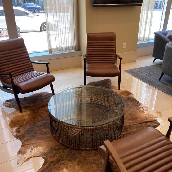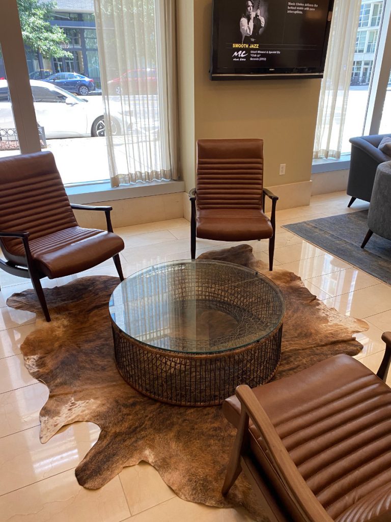 To keep a blend with the existing modern feel of the luxury condo’s spaces, Edward chose Green Front’s favorite Precedent for all fabrics and leathers incorporated and new modern case goods from Nuevo. He tied it all together with Green Front’s signature imported rugs.