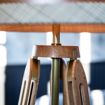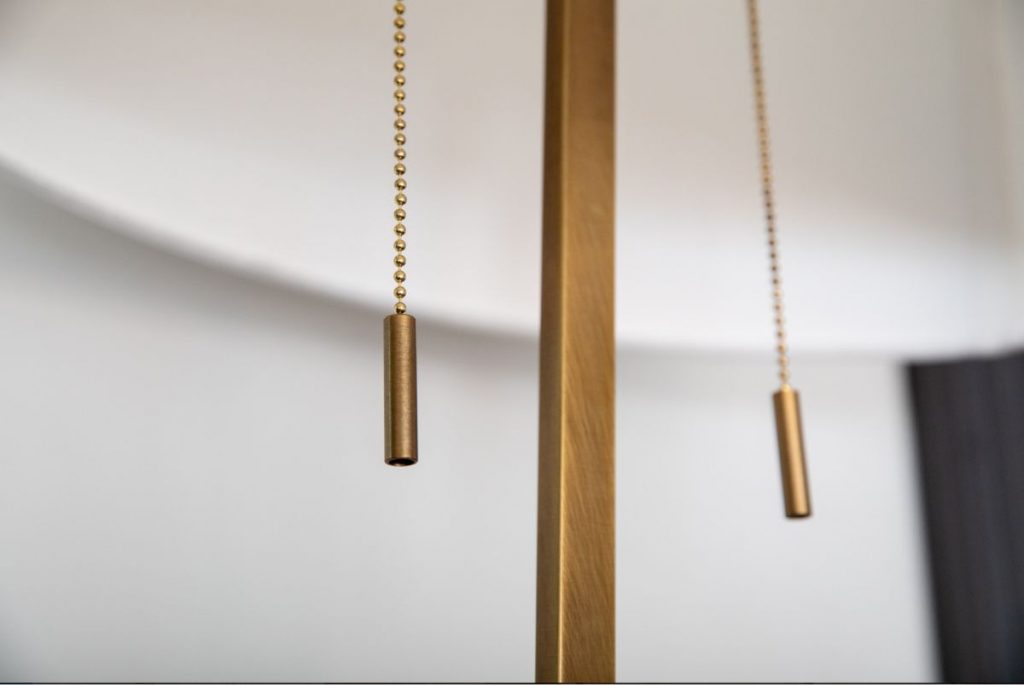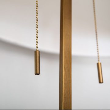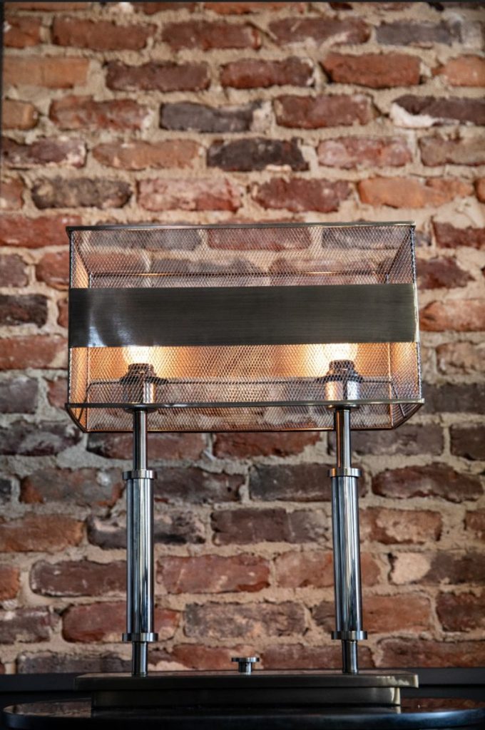 Industrial details are the focus with the Kemper Table Lamp from Harp & Finial. In homage to that spirit, the usual fabric shade has been replaced with striking mesh and metal. The dual-column base highlights the lamp’s switch, purposefully placed front and center in a surprising twist. The glow from the barely concealed bulbs warms up the otherwise minimal styling.