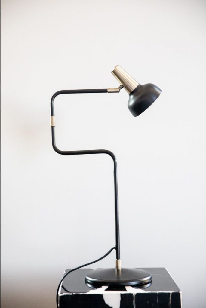 The Jethro Table Light (middle) from Nuevo is a modern task light workhorse. Its solid oak arms are cantilevered for full adjustability. Perfect for desks, dark corners, and anywhere you need extra function and stylish lighting. The space-saving profile of the Emmet Table Light (left and right), also from Neuvo, is another functional task lighting solution. The fully adjustable head puts you in complete control.