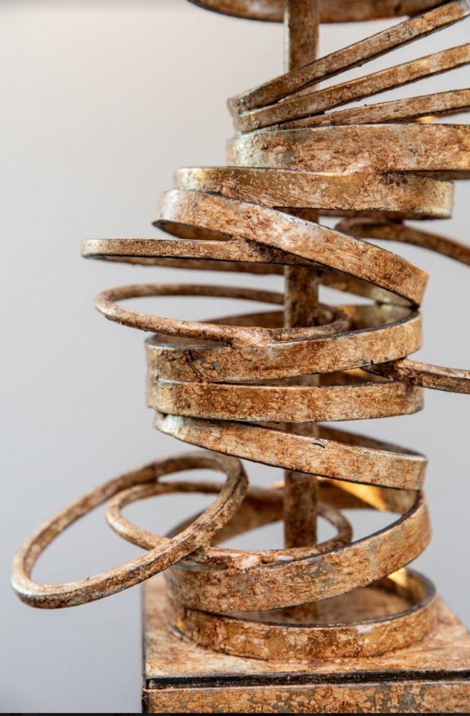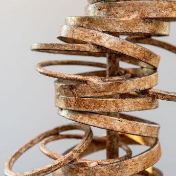 Transitional decor folds in beautifully to both traditional and modern styles. The John Richard Stacked Table Lamp is an excellent example that is comfortable in each of these worlds. With a scorched silver and gold finish on its hand-forged iron rings, this lamp gives a feeling of movement while maintaining a reserved elegance.