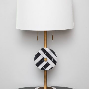The Gabby Piper Table Lamp is a traditional lamp from Green Front that makes a strong statement. The black and white marble center placed against the elegant antique brass neck gives this table lamp a contemporary update.