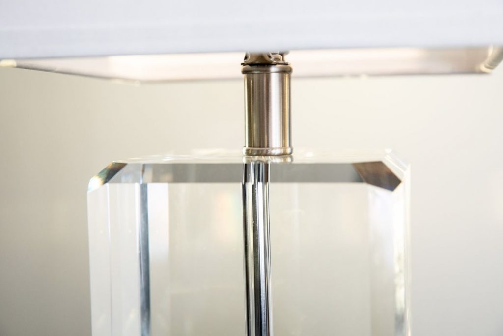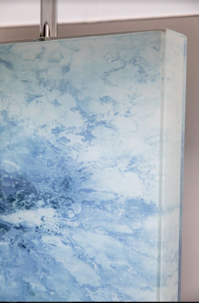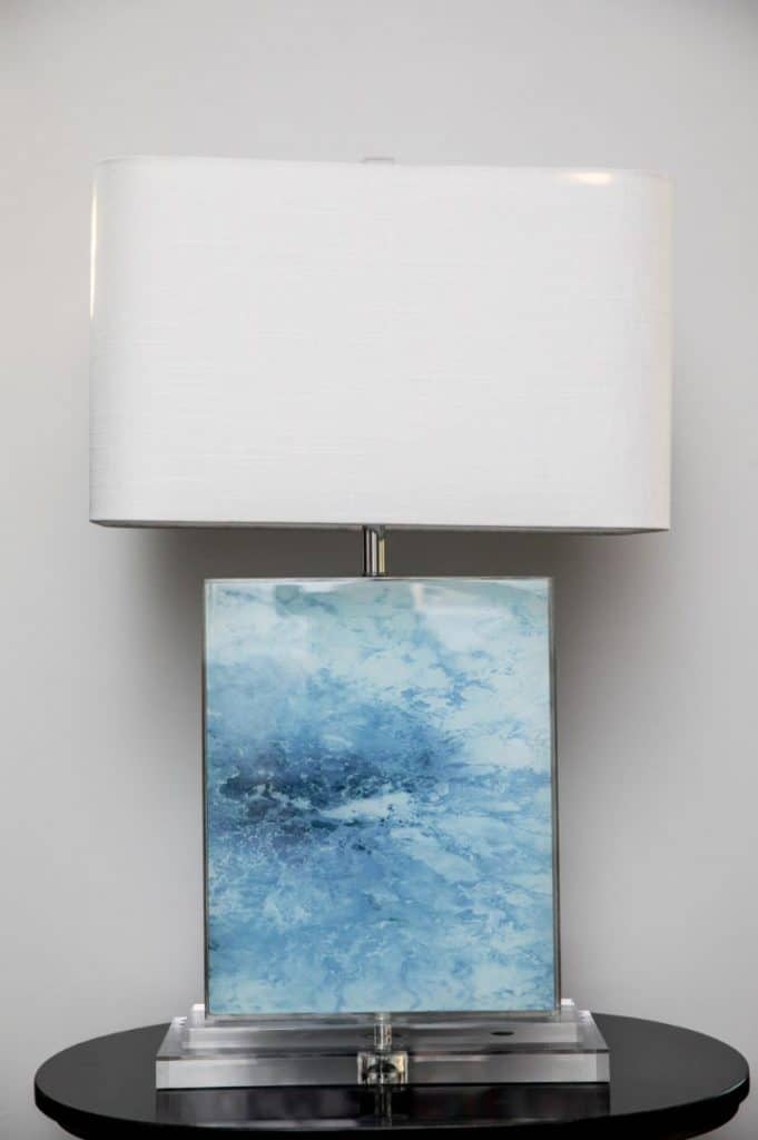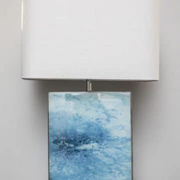 With beautiful abstract colors and clean lines, this John Richard Ocean Table Lamp will bring an ocean view to any room. It’s actually a small printed canvas encased in clear acrylic. The cream shade sets off this contemporary coastal piece perfectly.