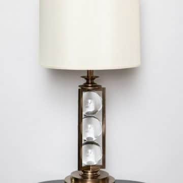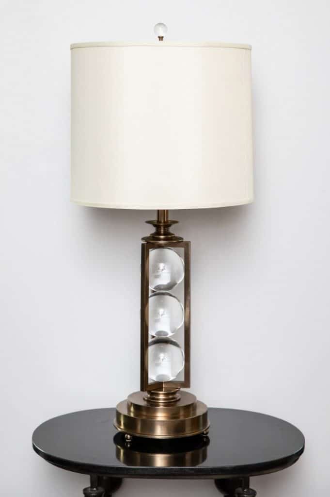 The Donald Table Lamp from Hickory Chair features three crystal spheres in a brass cage and stepped brass base, making it clear that traditional doesn’t have to mean understated. The bold masculine flair of this lamp gives it a fresh feel.