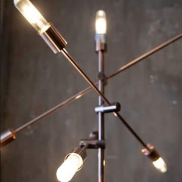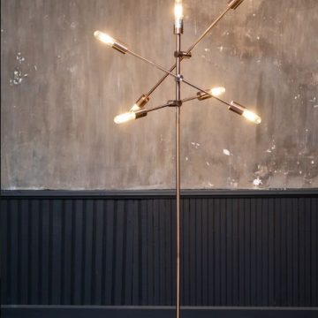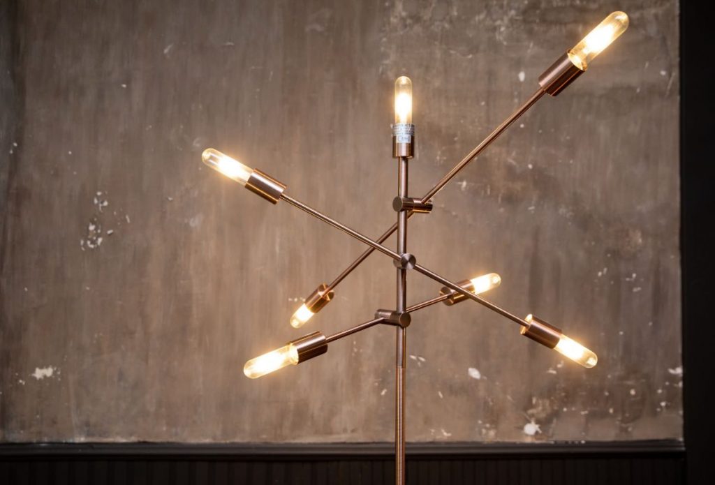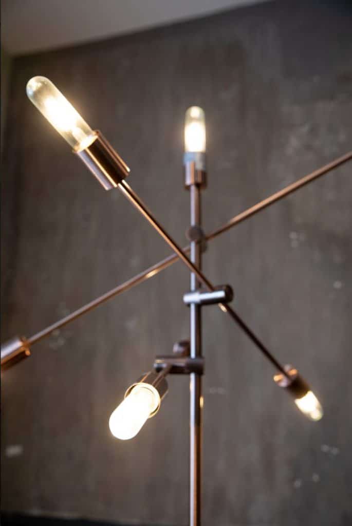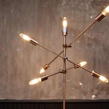 Mid-century meets funky with the Nuevo Byron Floor Lamp. Three arms and seven light fixtures rest on a black marble base. The warmth of the Edison bulbs are offset by a bright copper finish and the striking sputnik design.