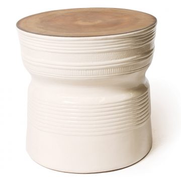 Make your low-maintenance outdoor living space come alive. Glazed side tables in a brilliant green, teal, orange, and more are a perfect pop of color. Woven chairs like the one above by Seasonal Living add texture and are made of durable regatta rope.