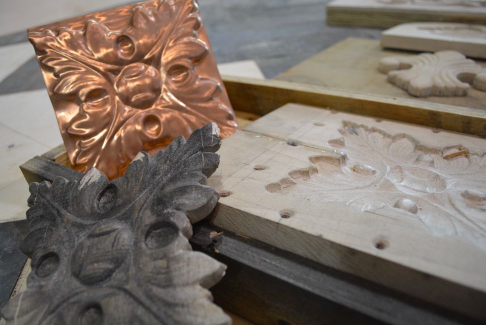 After finding portions of the original moulding and locating the original pattern used to create it, Al hand carved the Mesker designs in wood and used a 3,000-pound press to fashion the exterior details, including columns, from powder-coated copper. True to its name, Green Front’s Building One will be green, Charleston Green.