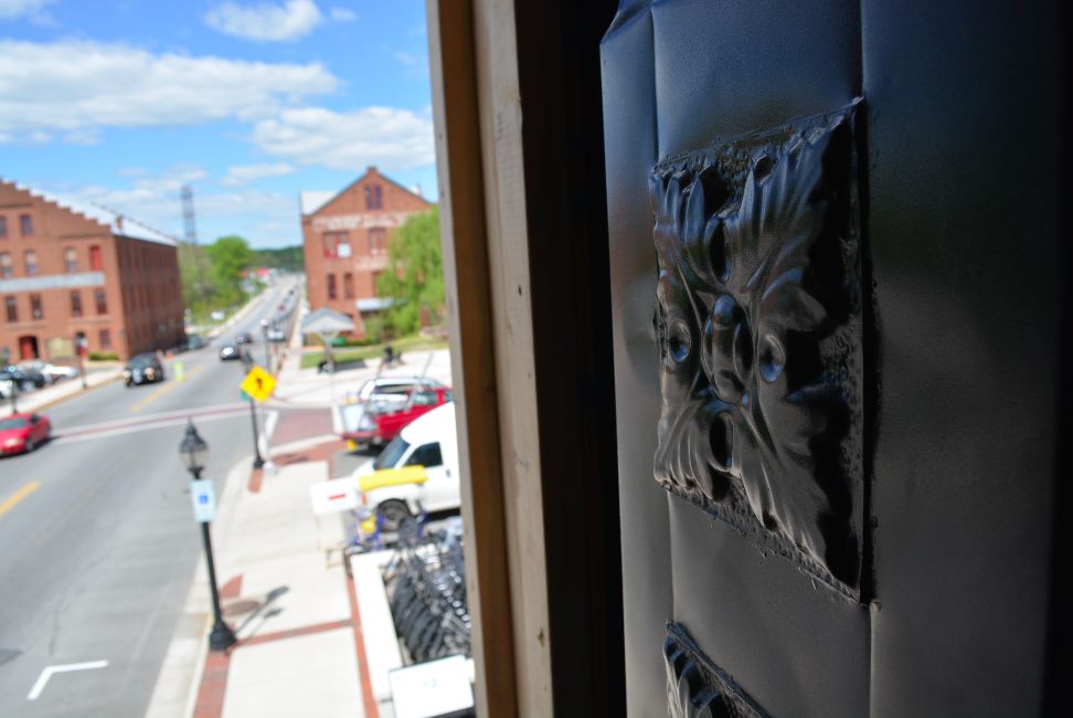 The restoration of Building One’s facade is only a small part of Den and Al’s vision for the space. Last year, Al updated the former rummage room in the back of Building One into a showroom. He hopes to begin work on other portions of the interior sometime in the future. The original beadboard ceiling is still there, under the drop ceiling, just waiting to be revealed.