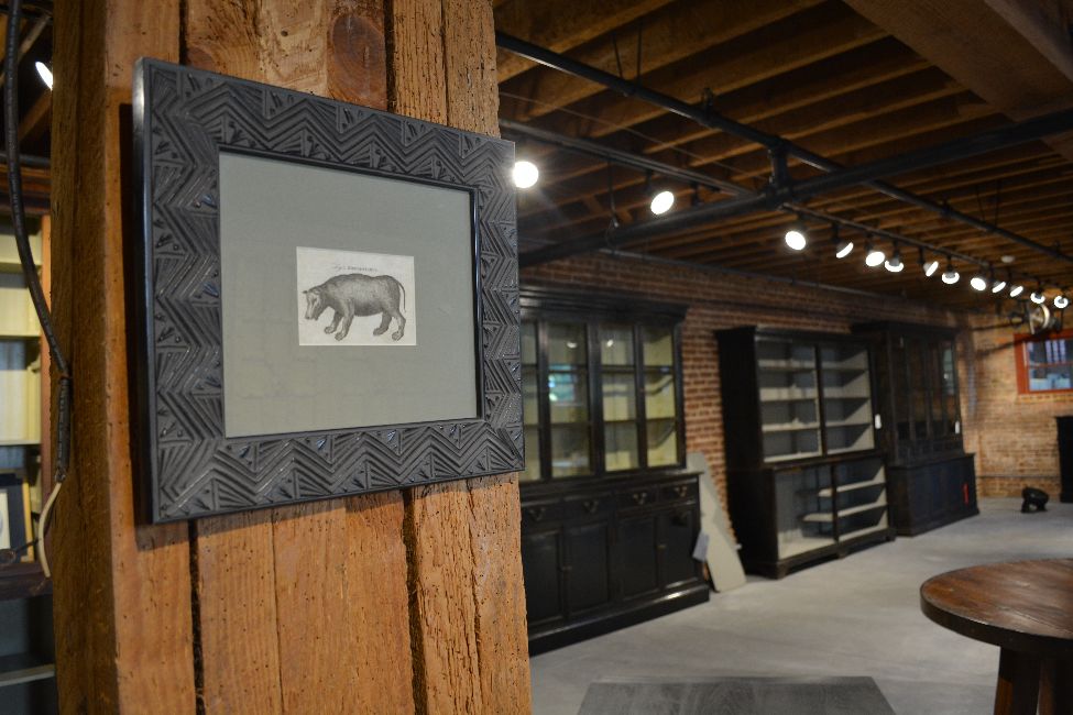 Along with the Van Thiel replicas, the new showroom also features a collection of original antique items, including chests, cabinets, chairs and even bright yellow doors from a French race car.
